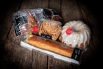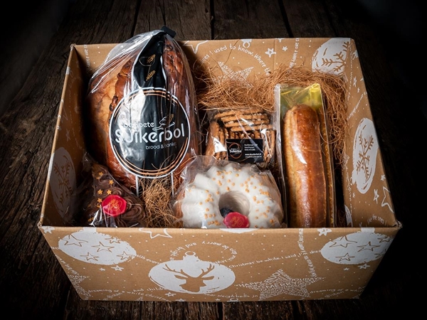 - Stol ca. 1000 gram - Tulband klein - Roomboter amandelstaaf - 250 gram kerstkoekjes - Chocolade kerstboompje